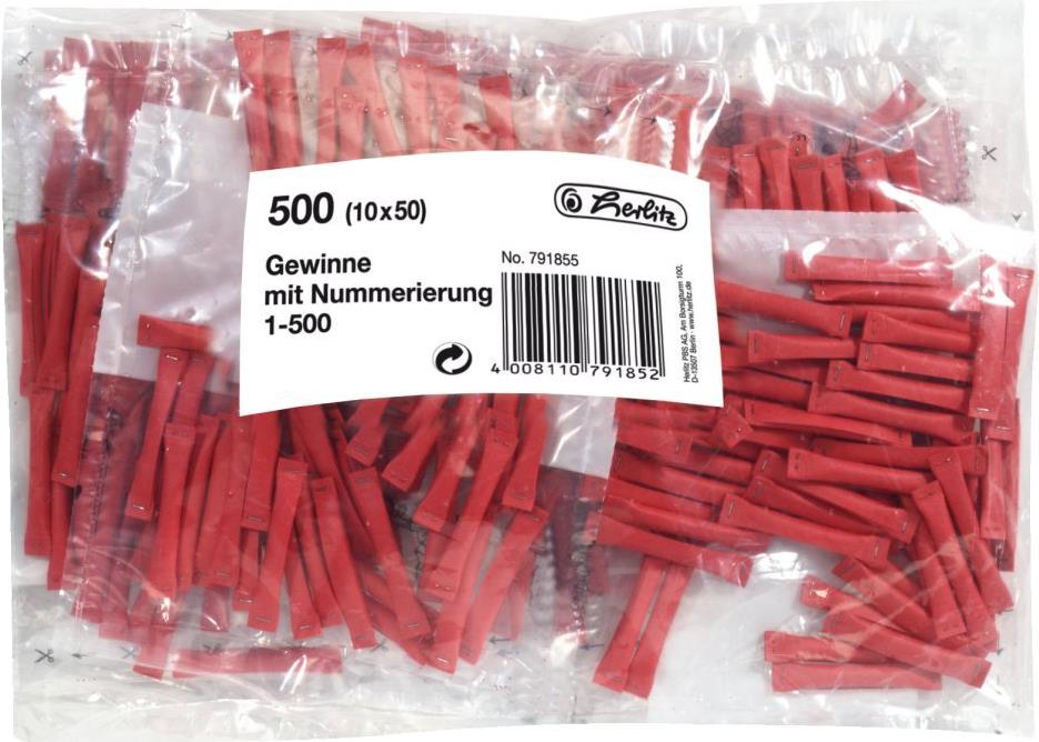 herlitz Gewinnlose, nummeriert 1-500, rot aus Papier, geklammert (00791855-001)
