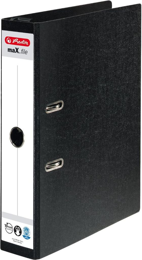 herlitz Hängeordner maX.file, Rückenbreite: 70 mm, schwarz DIN A4, aus Hartpappe, aufgeklebtes Rückenschild (10842284)