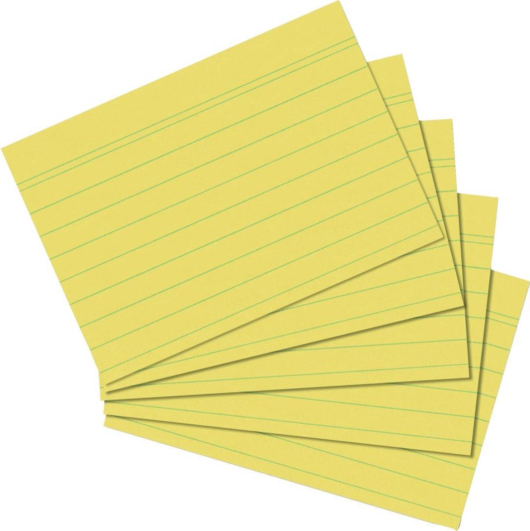 herlitz Karteikarten, DIN A5, liniert, gelb aus Papier, 170 g-qm, holzfrei, Linienfarbe: blau, doppelte (1150515)