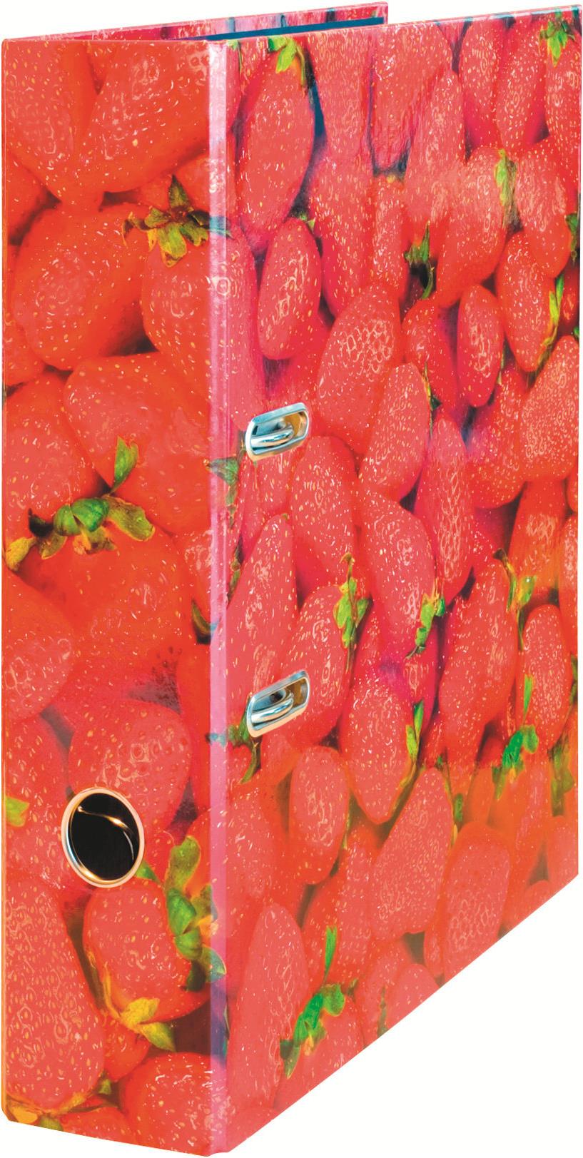 herlitz Motivordner maX.file Erdbeere, A4, Rückenbr: 80 mm Schlitzordner, Einband veredelt mit Glanzfolie, schwarzer (10485126)