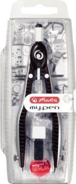 • herlitz Schnellverstellzirkel my.pen, schwarz-rot inkl. Ersatzminenbox, Stellschraube, Ersatzspitze und (11122322)