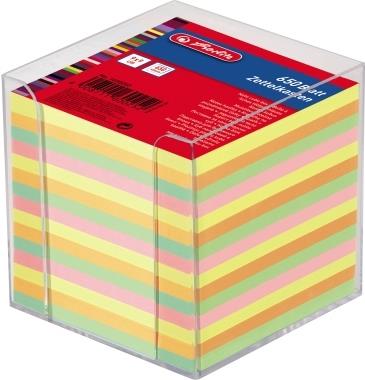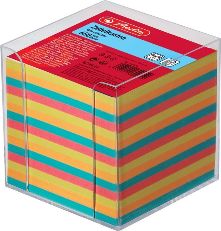 herlitz Zettelbox, Kunststoff, 90 x 90 mm, glasklar Inhalt: 650 Blatt farbig sortiertes Papier (160253)