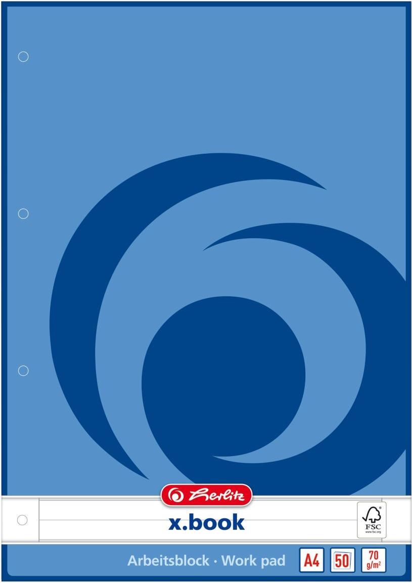 herlitz Arbeitsblock DIN A4, 50 Blatt, liniert mit Rand, 70 g-qm, holzfrei, FSC-Zertifiziert, 4-fach - 5 Stück (215418)