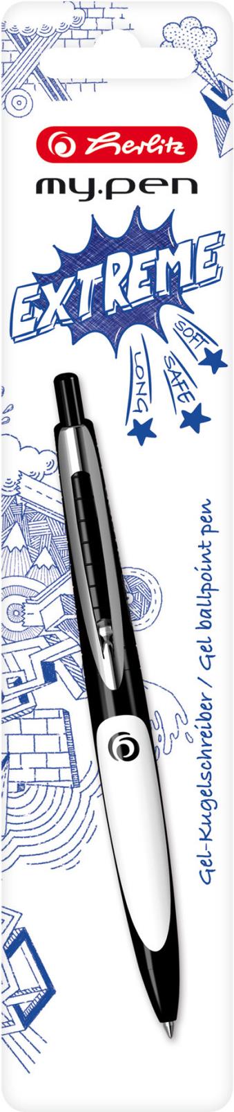 herlitz Druckkugelschreiber my.pen, schwarz/weiß Strichstärke: 0,6 mm, Strichfarbe: blau, Kunststoff-Schaft, - 1 Stück (50028276)