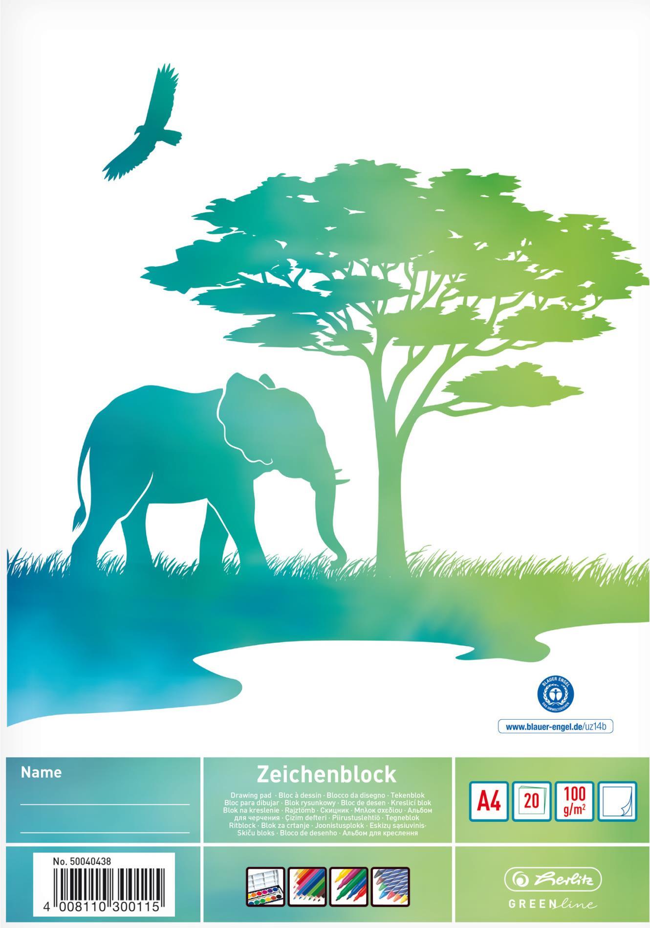 Herlitz Zeichenblock A4 GREENline Elefant 20 Blatt (50040438)