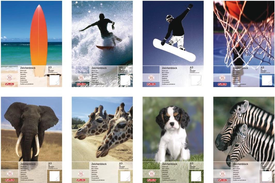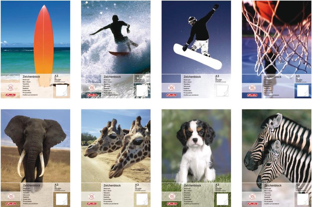 herlitz Zeichenblock DIN A3, 100 g-qm, 20 Blatt holzfrei, die Lieferung erfolgt in sortiert in verschiedenen - 5 Stück (5494310)
