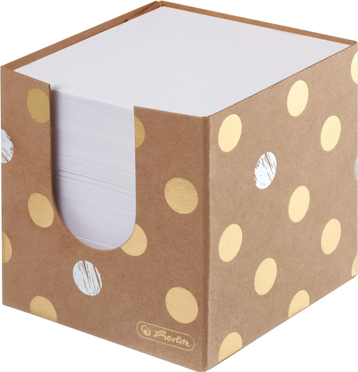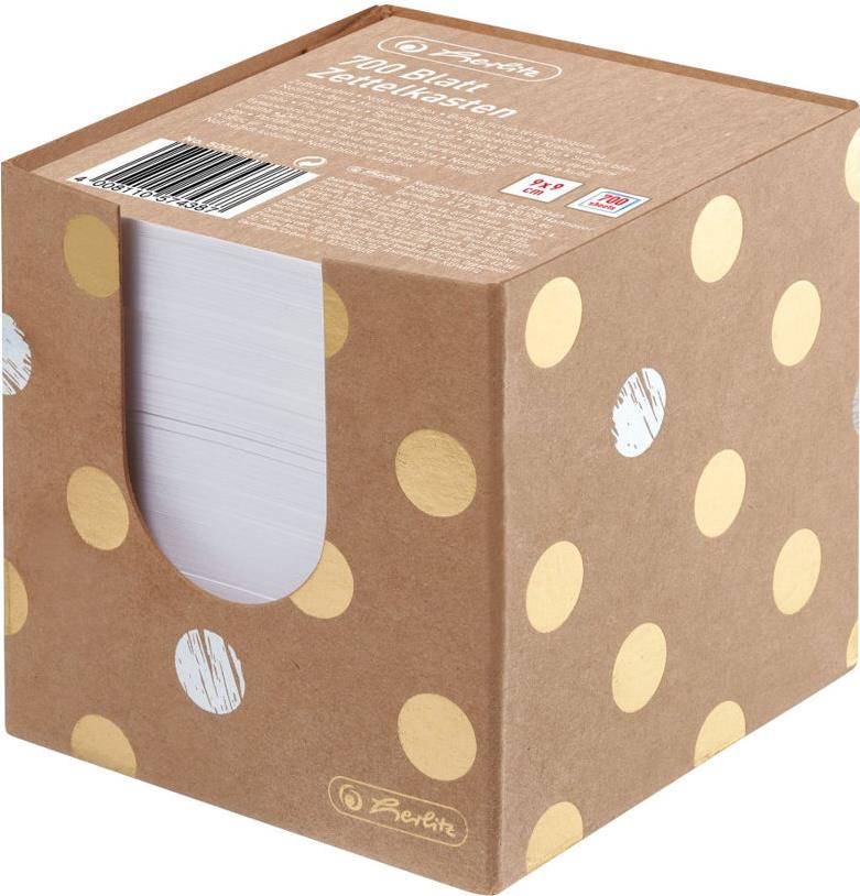 herlitz Zettelbox Pure Glam, 90 x 90 mm, braun bedruckt mit Punkten, aus Kraftkarton, Papier holzfrei, - 1 Stück (50021819)