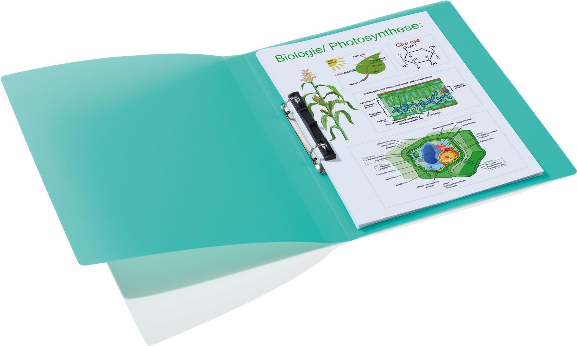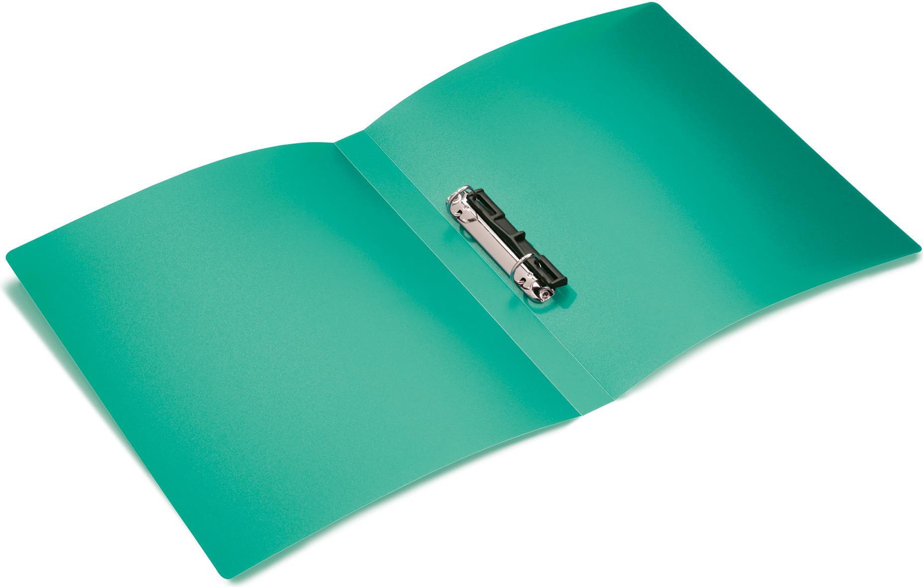Ringbücher aus strapazierfähigem Polypropylen. Mit besonderer 2-D-Ring-Mechanik ausgestattet für leichtes Öffnen und Schließen. Mit praktischem Niederhalter.
