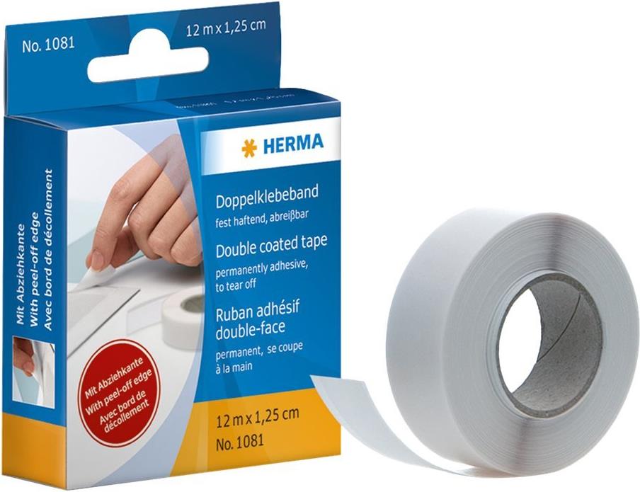 HERMA doppelseitiges Klebeband, 16 mm x 12 m Gummierbreite 12 mm, zweiseitig selbstklebend (1081)
