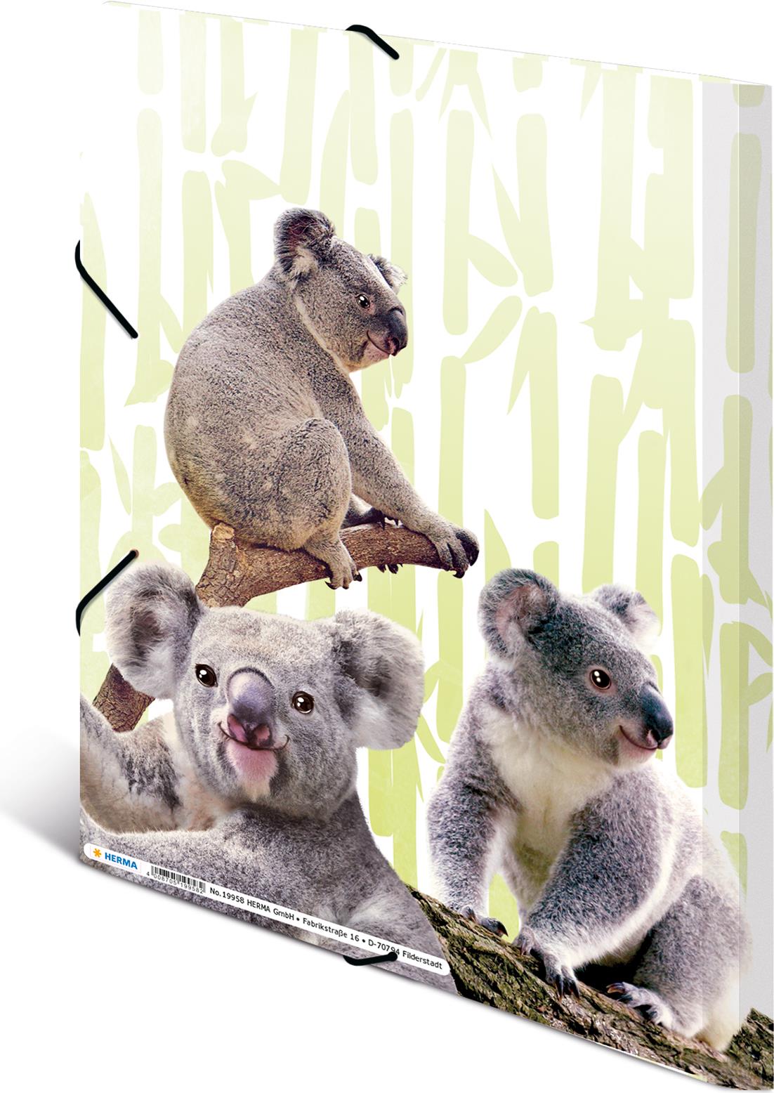 HERMA Eckspannermappe Exotische Tiere, A4, Koalafamilie aus PP, Maße: (B)244 x (T)4 x (H)320 mm, mit 3 Innenklappen - 1 Stück (19958)