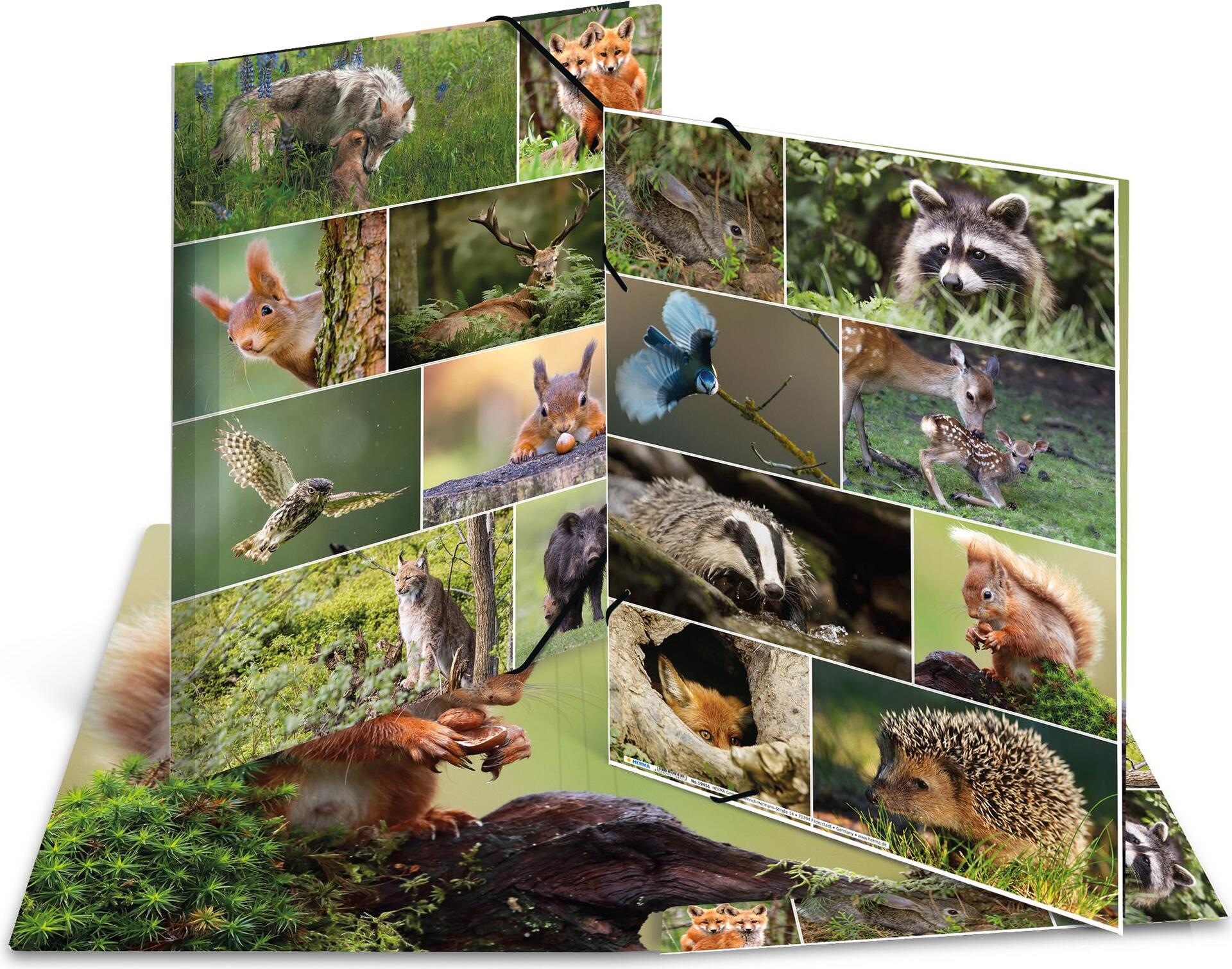 HERMA Eckspannermappe "Waldtiere", Karton, DIN A3 Maße: (B)297 x (T)4 x (H)420 mm, mit Innenklappen und - 1 Stück (19451)