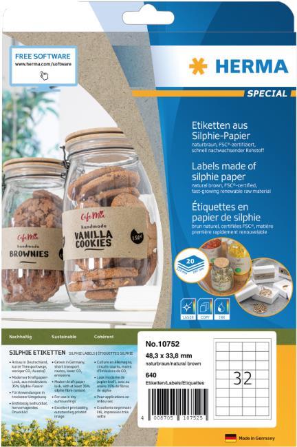 HERMA Etiketten aus Silphie-Papier, 48,3 x 33 mm, naturbraun selbstklebend, permanent haftend, bedruckbar, - 1 Stück (10752)