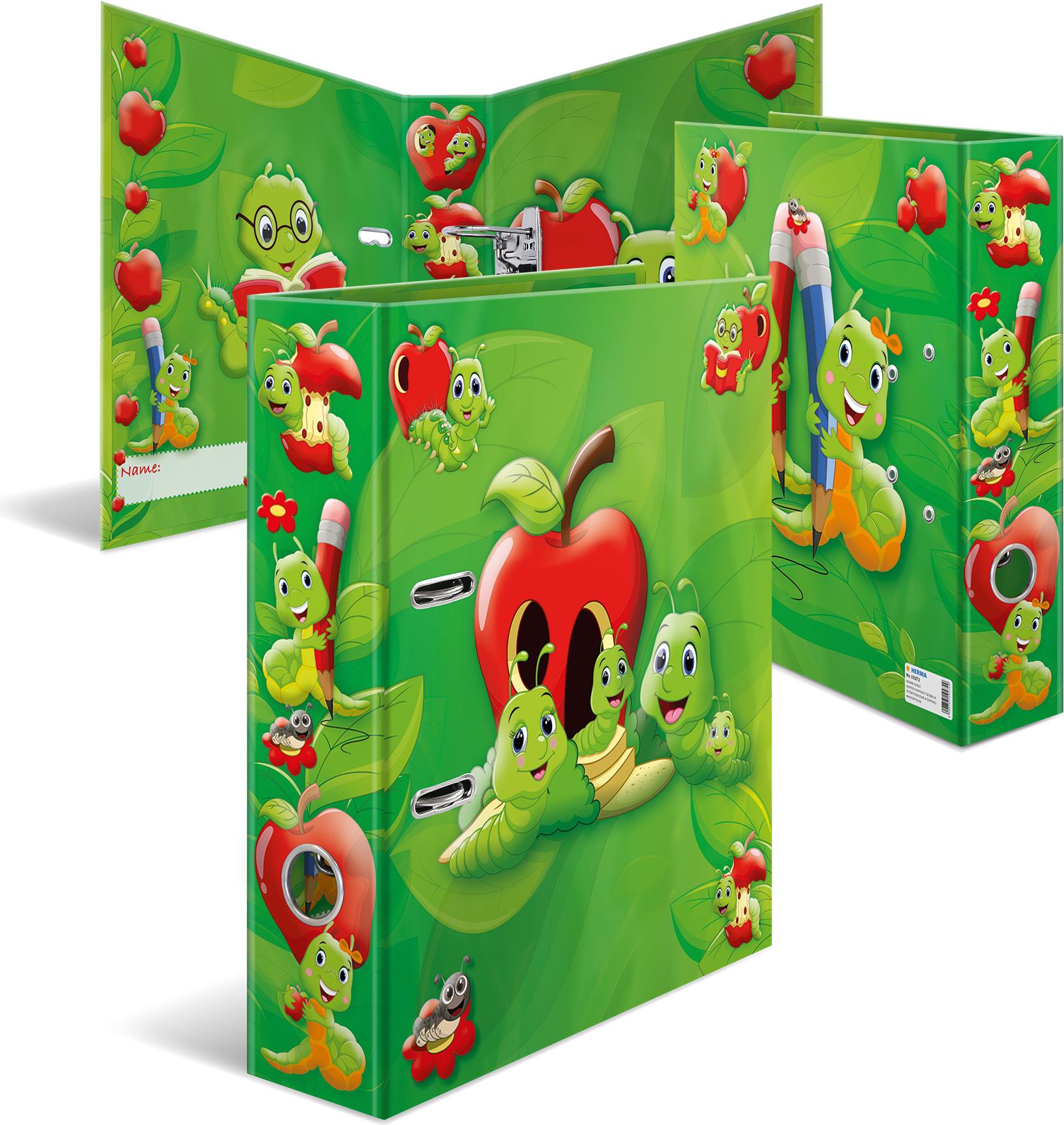 HERMA Kindergarten-Motivordner "Fritz der Wurm", DIN A4 Rückenbreite: 70 mm, aus stabilem Karton, bedruckter - 1 Stück (19272)