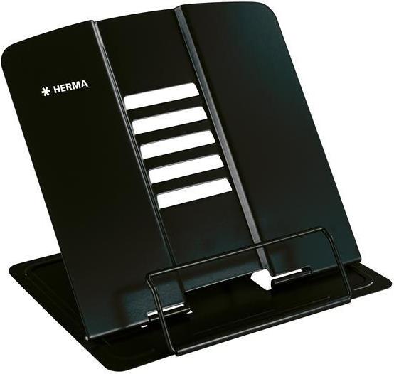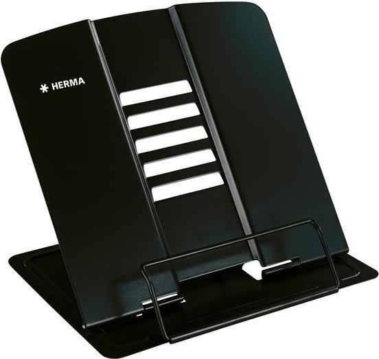 Leseständer, Buchstütze, Buch- und Kochbuchhalter, Tablet-Stütze: Es gibt viele Bezeichnungen für den einzigartigen und multifunktionalen Bücherständer von HERMA. Der Leseständer ist schwarz, aus lackiertem Metall ...