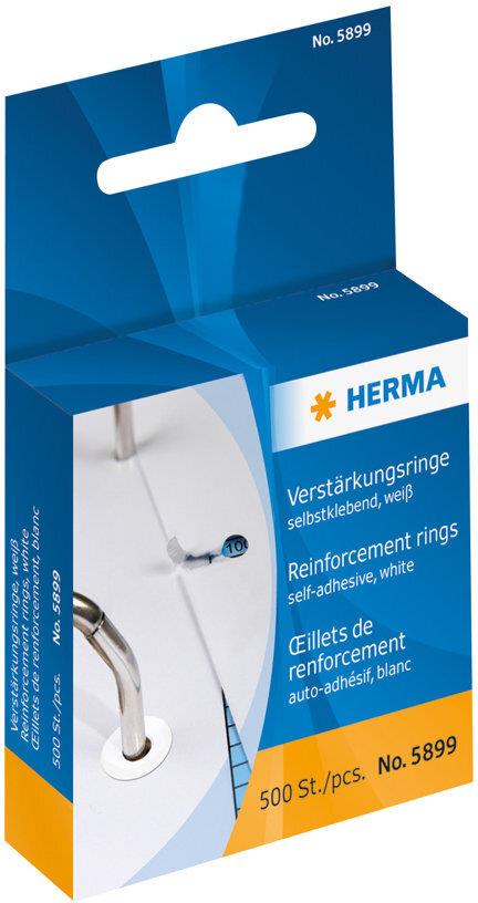 HERMA Lochverstärkungsringe, aus Kunststoff, weiß selbstklebend, Außendurchmesser: 12 mm, im Kartonspender (5899)