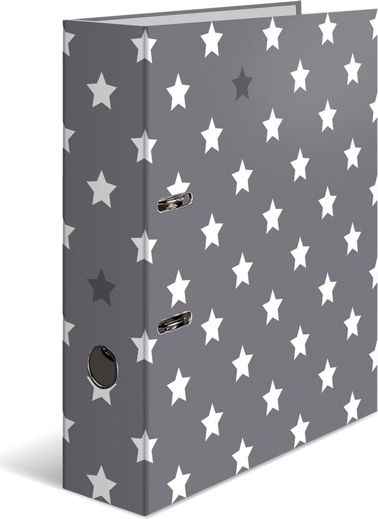 HERMA Motivordner "Stars", Grau mit weißen Sternen, DIN A4 Rückenbreite: 70 mm, aus stabilem Karton, bedruckter - 1 Stück (7194)