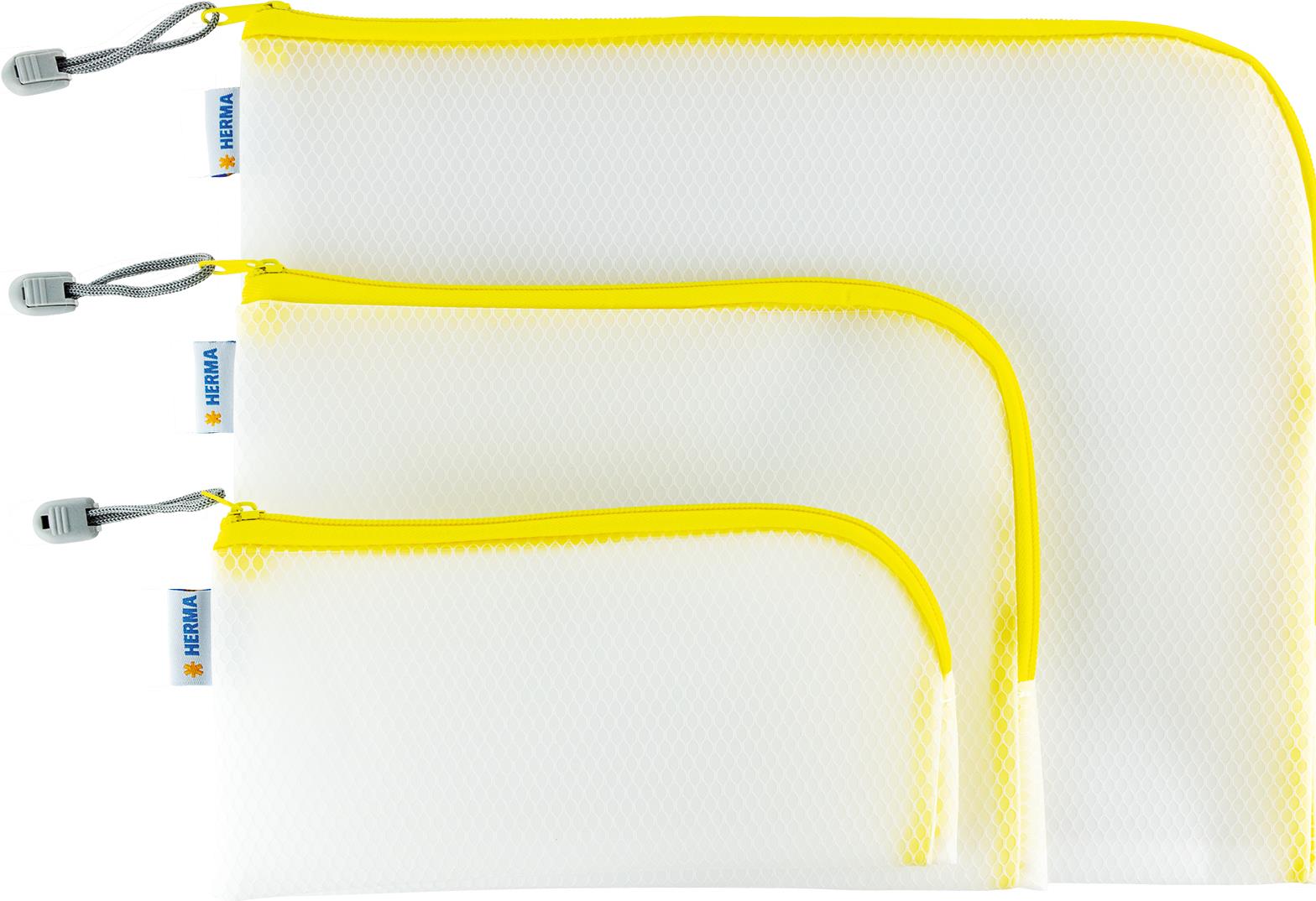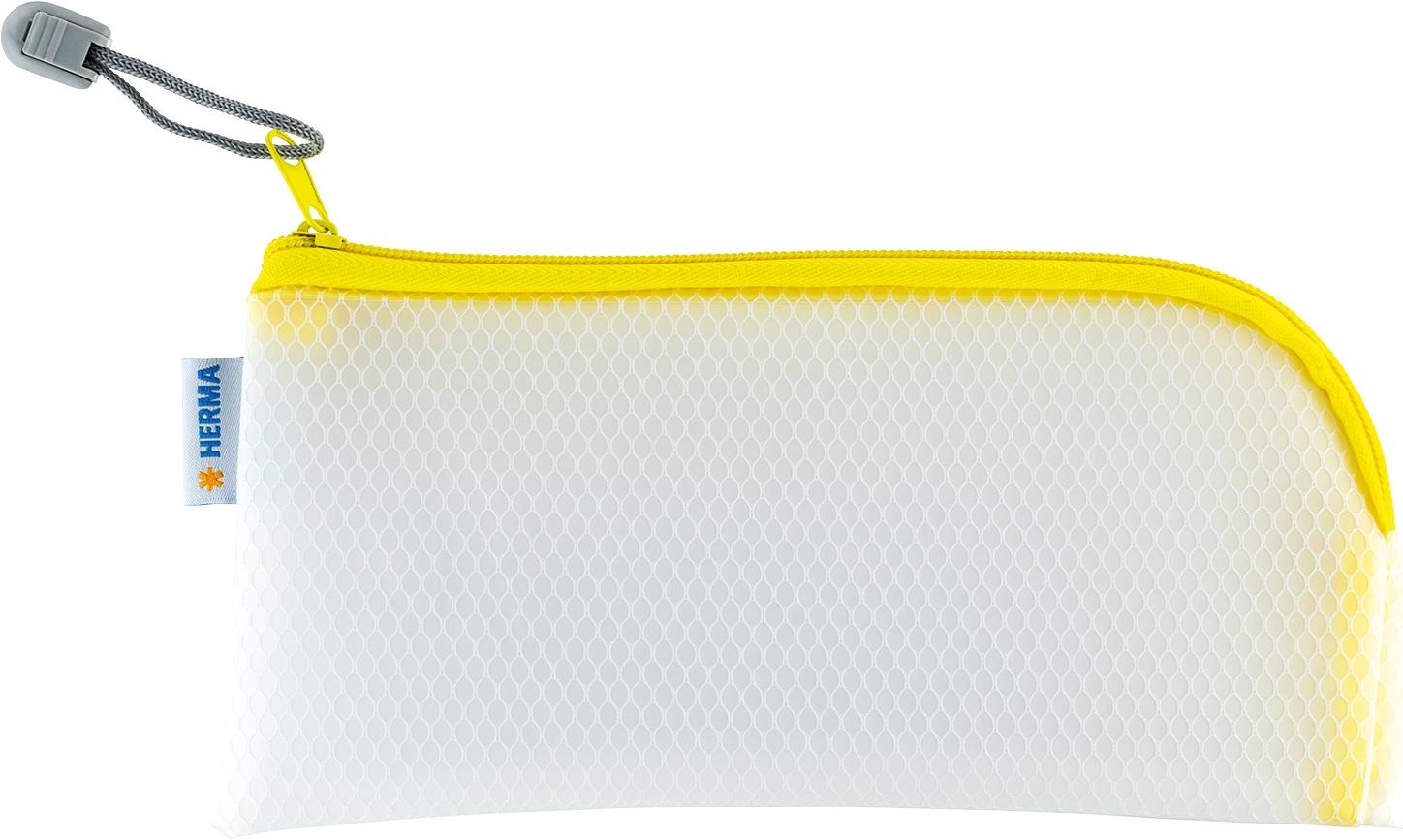 Das HERMA Universaltaschen-Etui, gelb eingefasst, in der Größe 23 x 11 cm, mit praktischem Reißverschluss ber Eck gibt es in den Farben rot, blau, grün und orange. Die halbtransparente Tasche ist für viele Zwecke super ...