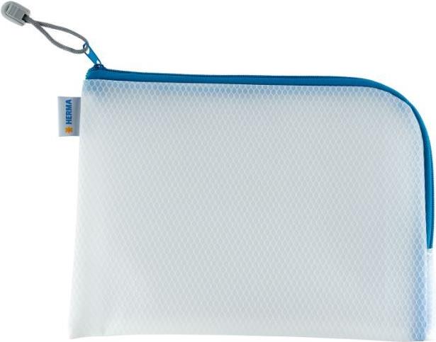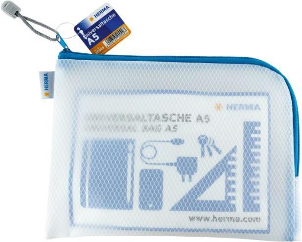Die HERMA Universaltasche A5, 26 x 20 cm, blau eingefasst, mit praktischem Reißverschluss über Eck gibt es auch in den Farben rot, g elb, grün und orange. Die halbtransparente Tasche ist für viele Zwecke super ...