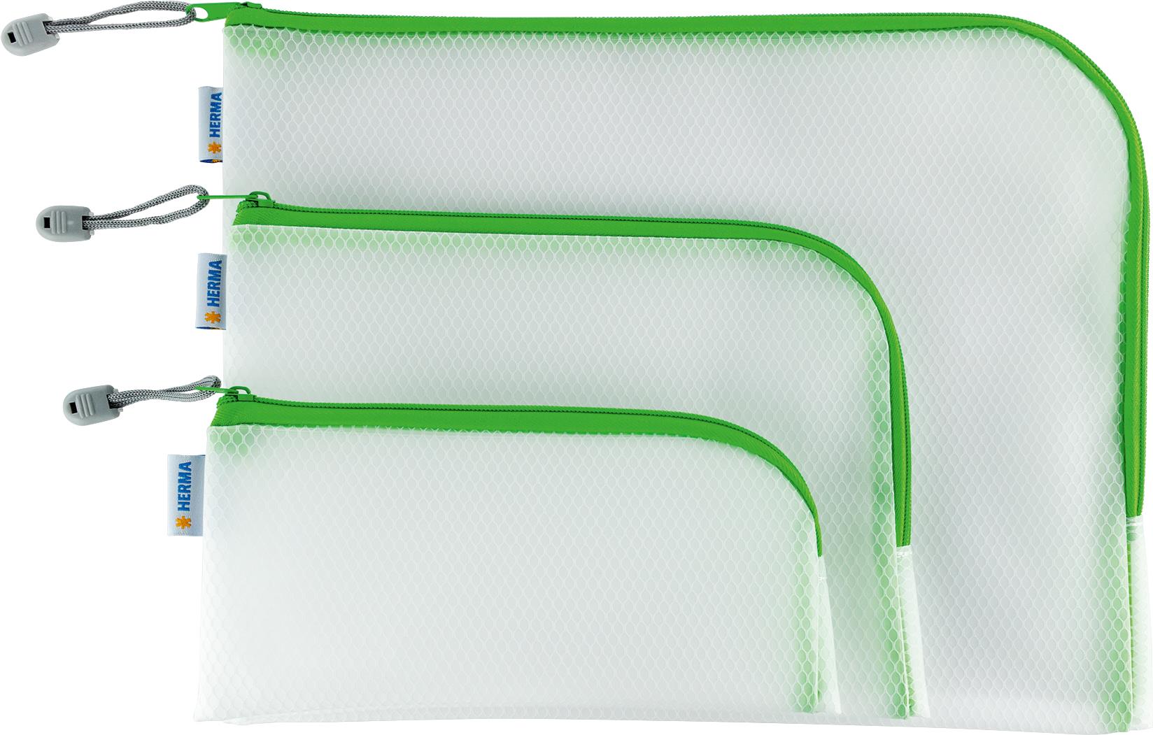 Die HERMA Universaltasche A5, 26 x 20 cm, grün eingefasst, mit praktischem Reißverschluss über Eck gibt es auch in den Farben rot, b lau, gelb und orange. Die halbtransparente Tasche ist für viele Zwecke super ...
