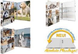 Neu in der Tierfreundeserie Animals sind die hochwertig glänzenden Ringbücher mit Ringmechanik und Metall-Niederhalter. Neu ist auch der gefräste Rücken, der leichtes Öffnen und Schließen ermöglicht sowie eine 100 % Planlage. Aus stabilem Karton mit einer Rückenbreite von 35 mm sind sie für DIN A4 Prospekthüllen, Trennstreifen und Register ideal geeignet.