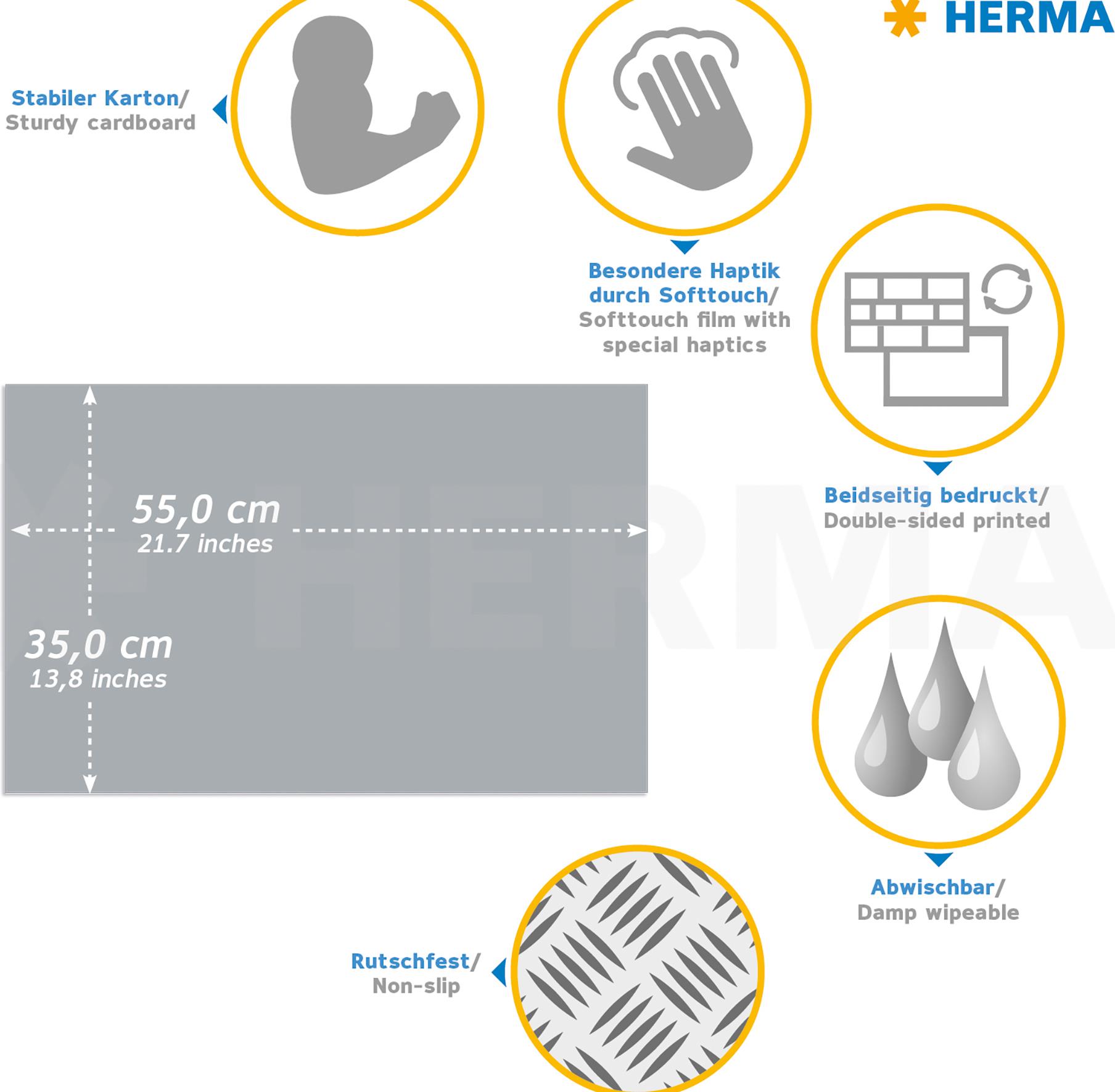 HERMA Schreibunterlage "Weltkarte" (B)550 x (H)350 mm Softtouch-Oberfläche, beidseitig bedruckt, aus stabilem - 1 Stück (19667)