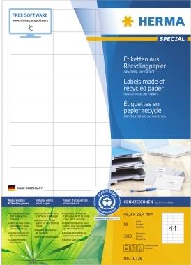 HERMA Universal-Etiketten Recycling, 48,3 x 25,4 mm, 80 Bl. naturweiß, selbstklebend, bedruckbar, permanent haftend - 1 Stück (10726)