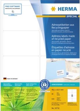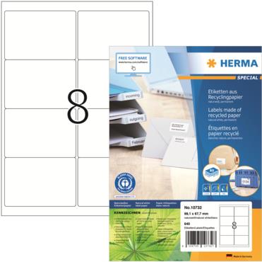 HERMA Universal-Etiketten Recycling, 99,1 x 67,7 mm mit Rand, selbstklebend, permanent haftend, naturweiß, aus - 1 Stück (10732)
