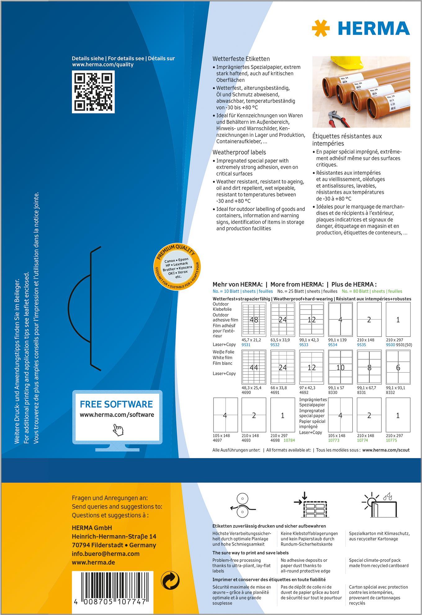 HERMA Wetterfeste Etiketten aus Spezialpapier, 210 x 148 mm weiß, aus Papier, imprägniert, selbstklebend, - 1 Stück (10774)
