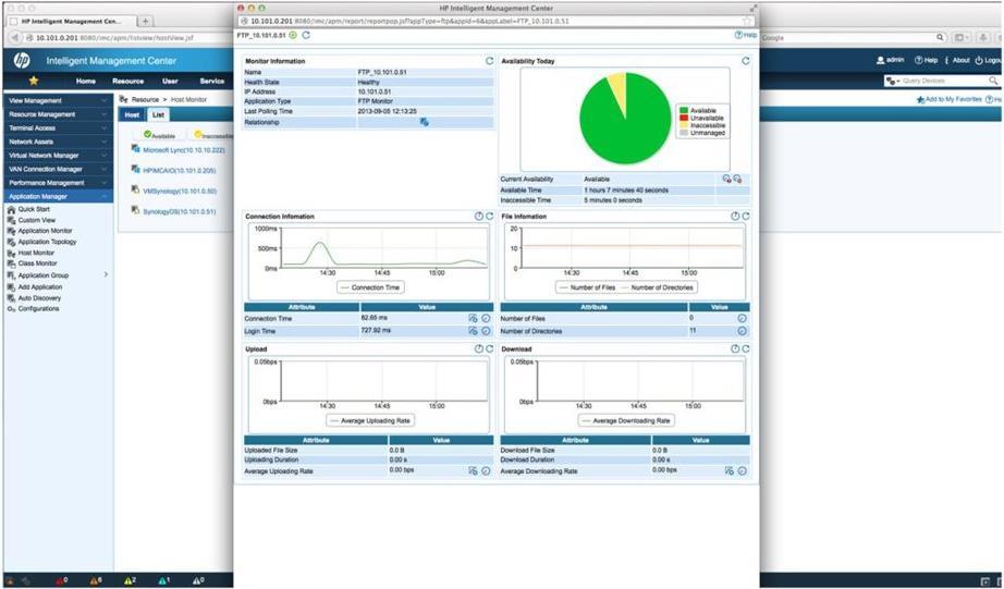 Die HPE IMC Application Performance Manager (APM) Software bietet eine Ansicht der Anwendungsverfügbarkeit, welche es Administratoren ermöglicht, den Status kritischer Geschäftsanwendungen und deren Auswirkungen auf die Netzwerkleistung darzustellen und zu messen. So lässt sich problemlos ermitteln, welche Geschäftsprozesse betroffen sind und welche Anwendungsprobleme vorrangig behandelt werden müssen. All dies trägt zu einer schnellen und effektiven Fehlerbehebung bei. Bietet eine Benutzeroberfläche mit Fehlerverwaltung und Leistungsüberwachung von Anwendungen, Servern und Datenbanken. Funktioniert zusammen mit dem IMC Service Health Manager, um eine Gesamtbeurteilung des Netzwerkstatus bereitzustellen.