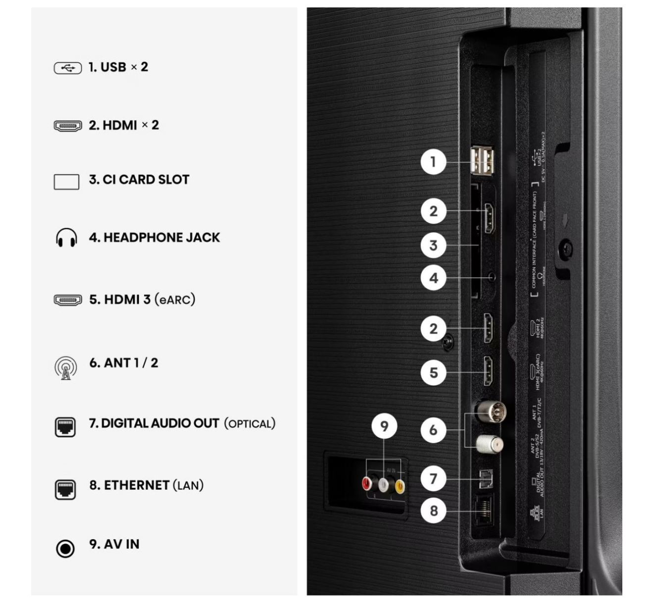 • Smart-TV mit HomeOS, WLAN, Bluetooth, Ethernet und Apple AirPlay 2.