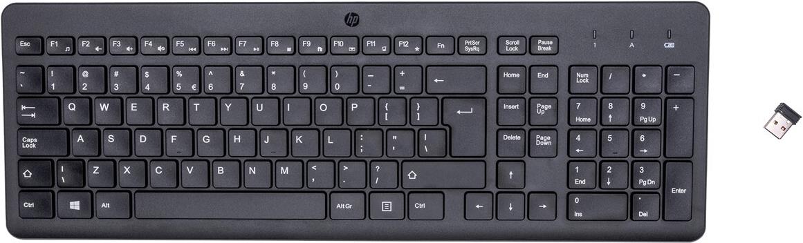 HP 220 Wireless-Tastatur - Volle Größe (100%) - Kabellos - RF Wireless - Membran Key Switch - Schwarz (805T2AA#ABB)