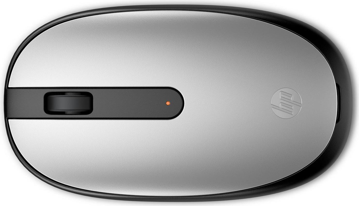 HP 240 Bluetooth-Maus (Pike Silver). Formfaktor: Beidhändig. Bewegungerfassungs Technologie: Optisch, Geräteschnittstelle: Bluetooth, Bewegung Auflösung: 1600 DPI, Tastentyp: Gedrückte Tasten, Knopfanzahl: 3, Scroll Typ: Rad. Energiequelle: Batterien. Produktfarbe: Silber (43N04AA)