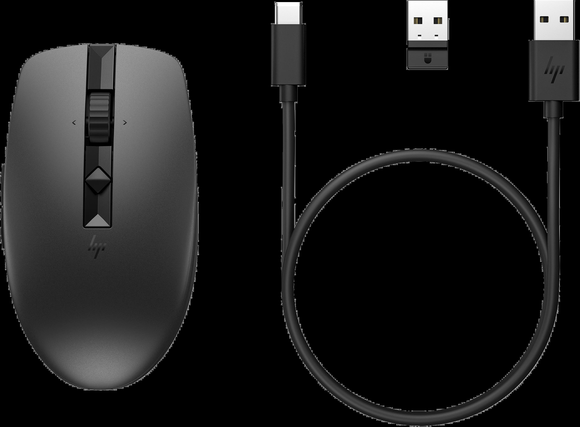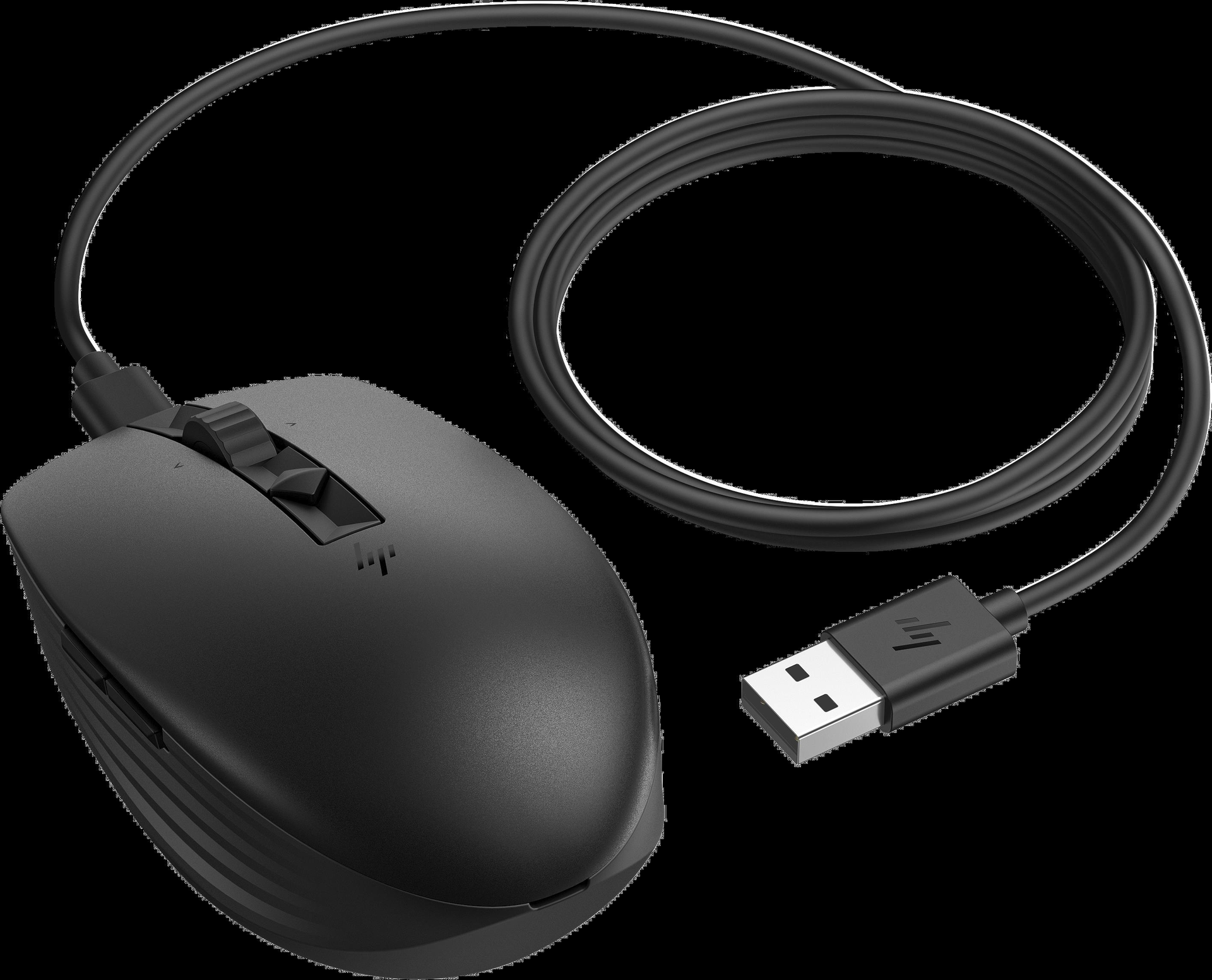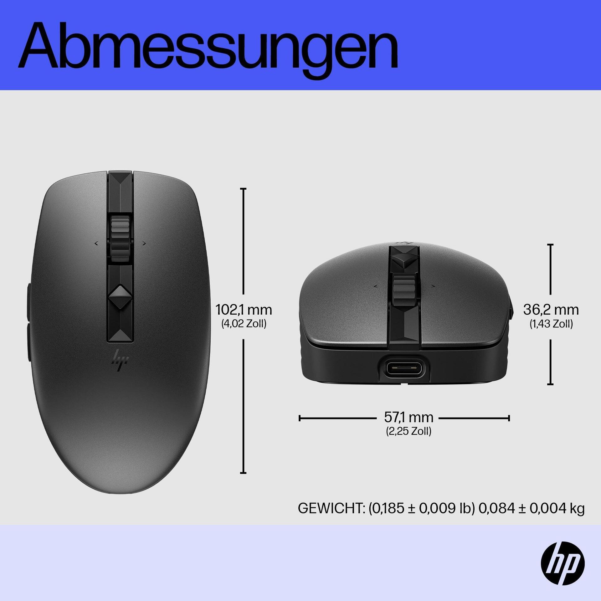 HP 715 Wiederaufladbare Maus für mehrere Geräte - Beidhändig - RF Wireless + Bluetooth - 3000 DPI - Schwarz (6E6F0AA)