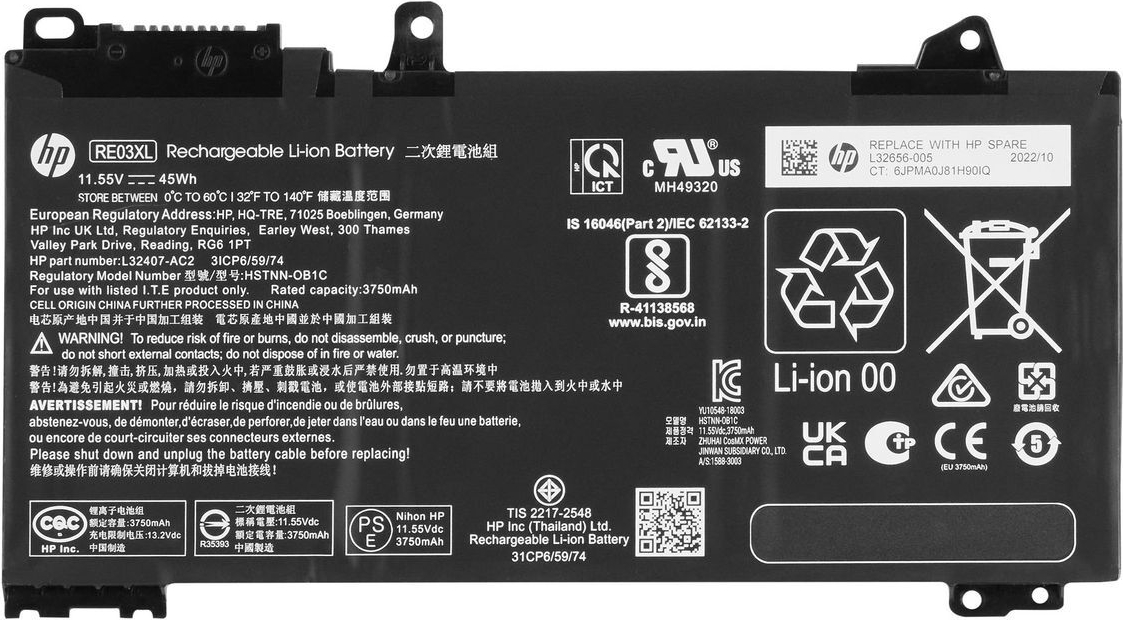 HP - Laptop-Batterie - Lithium-Ionen - 3 Zellen - 3920 mAh - 45 Wh - für ProBook 430 G6, 430 G7, 440 G6, 440 G7, 445 G6, 445 G7, 450 G6, 450 G7, 455 G7 (L32656-002)