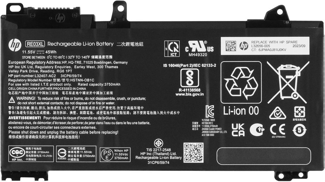 HP Battery 3 Cell 45Wh 3.92Ah LI (L32656-005)