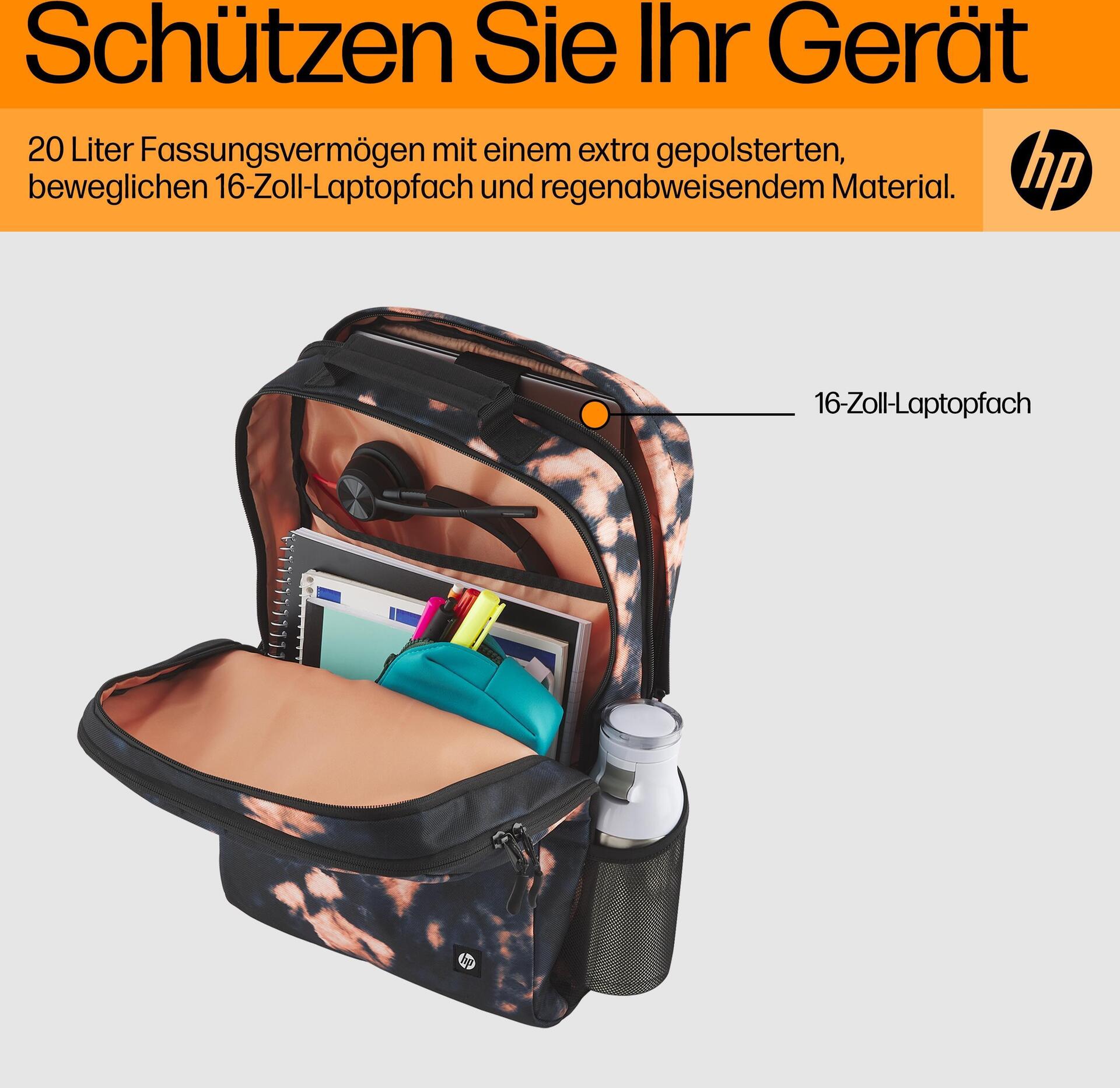 HP Campus XL Rucksack (Tie Dye) - 50% post-consumer recycled plastic; LDPE bag contains 100% recycled plastic; Hanger tag is made... - 305 mm - 165 mm - 430 mm - 620 g - 305 mm (7J593AA)