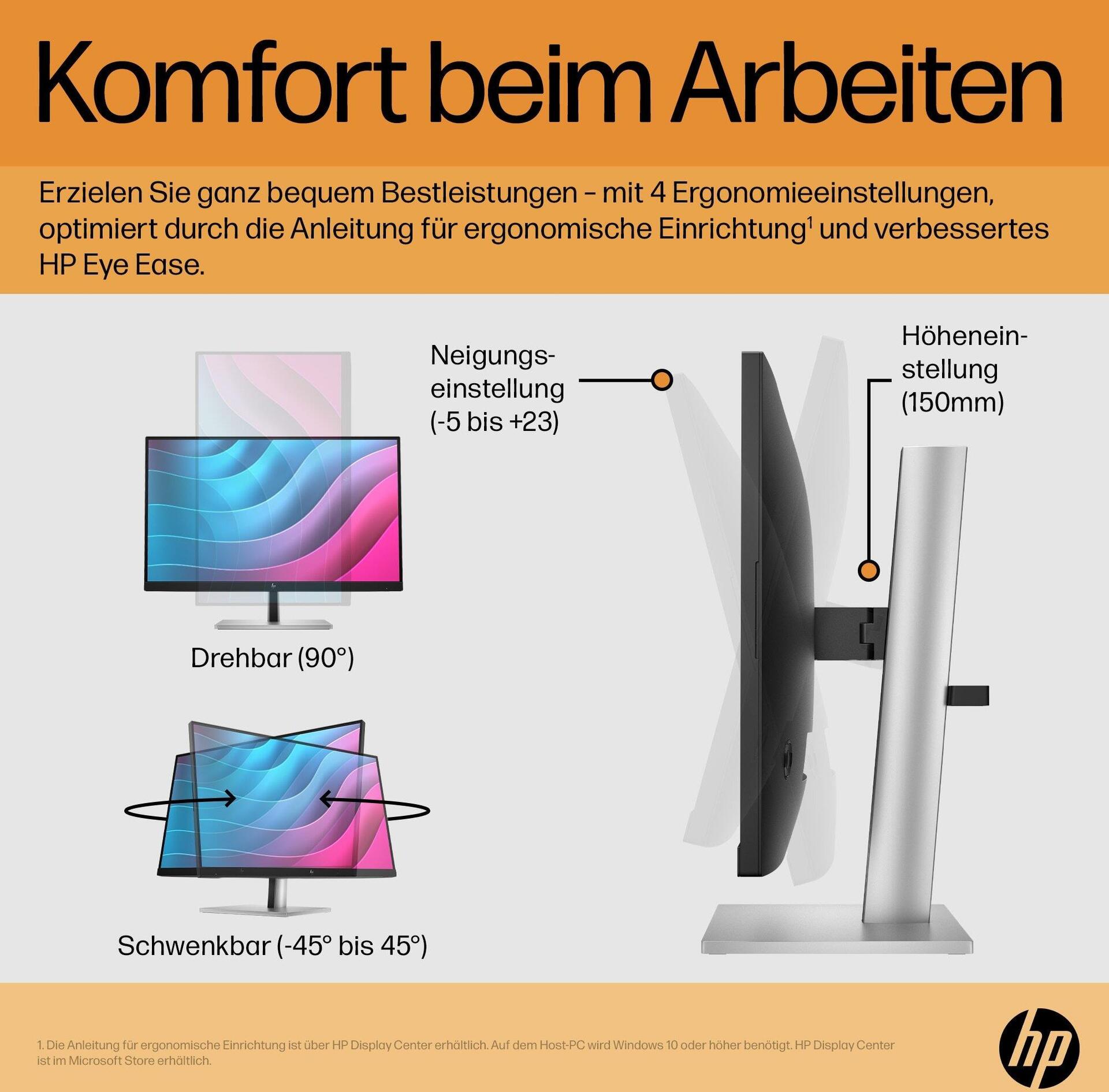 Der HP E24 G5 FHD Monitor wurde bewusst so konzipiert, dass er gestochen scharfe Bilder, individuellen Komfort und echte Flexibilität bietet, sodass nichts zwischen Ihnen und Ihren besten Leistungen steht. Dieses elegante, umweltfreundliche Display eignet sich sowohl für das Büro als auch für zu Hause.