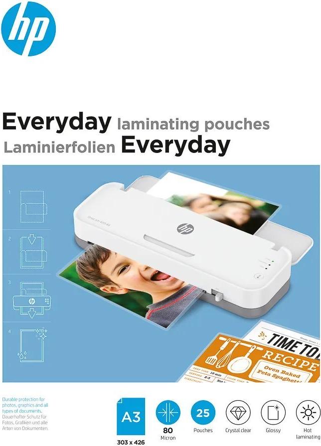 HP Everyday - 80 Mikron - 25er-Pack - glänzend - durchsichtig - 303 x 426 mm Taschen für Laminierung (9152)
