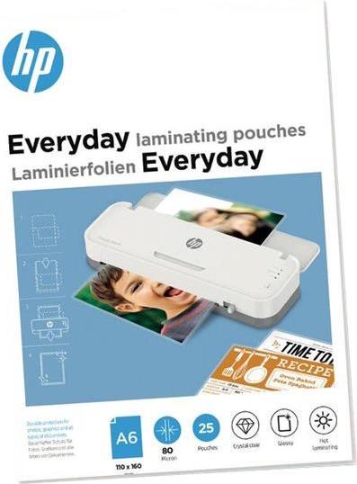 HP Everyday - 80 Mikron - 25er-Pack - glänzend - durchsichtig - DIN A6 (110 x 160 mm) Taschen für Laminierung (9156)