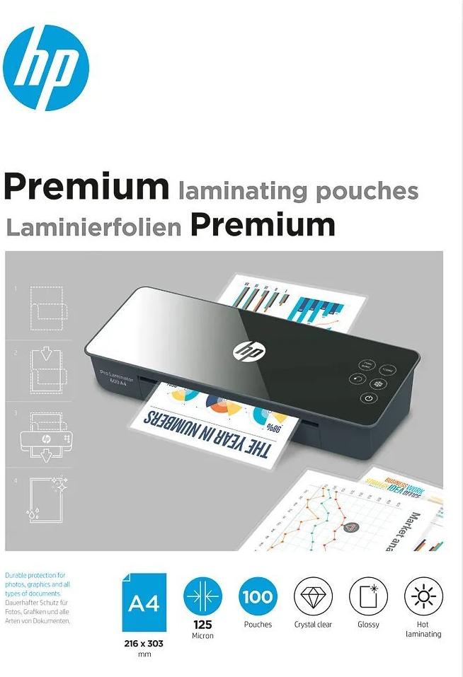 HP Premium - 125 Mikron - 100er-Pack - glänzend - DIN A4 (216 x 303 mm) Taschen für Laminierung (9124)