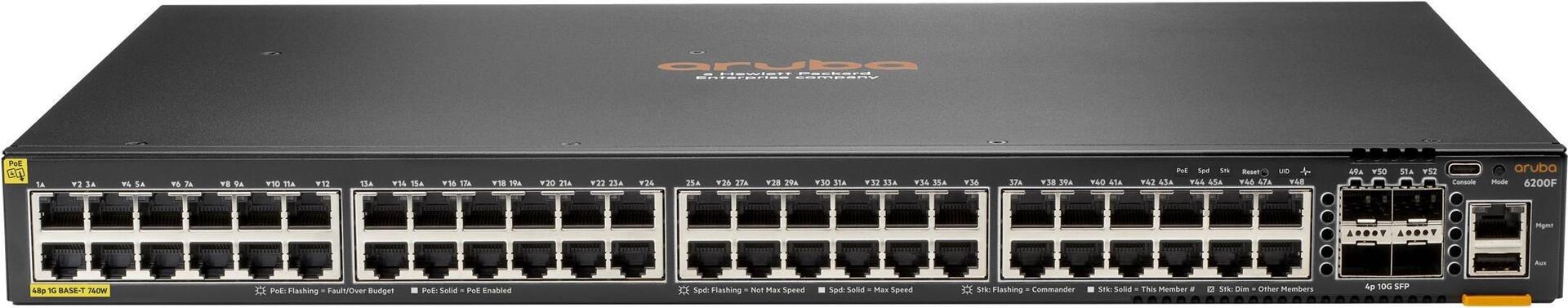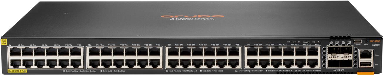 | Produktbeschreibung | HPE Aruba Networking CX 6200F 48G Class4 PoE 4SFP+ 740W Switch - Switch - max. Stapelentfernung 10 km - 48 Anschlüsse - managed - an Rack montierbar |