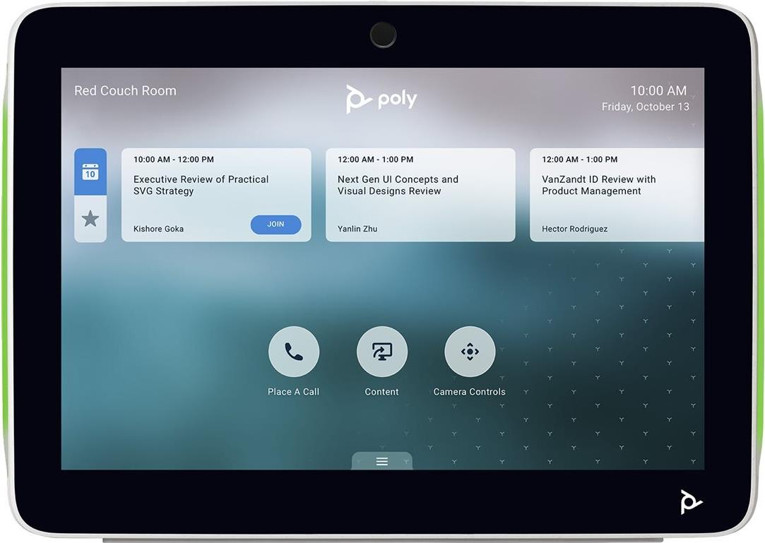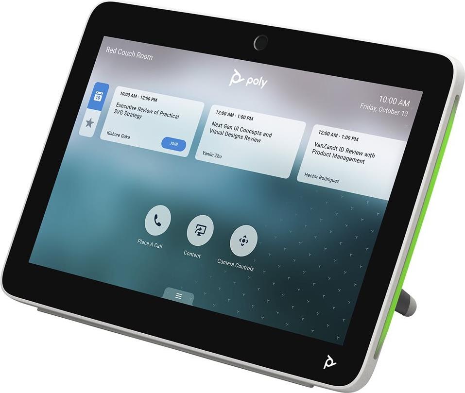 Das Display mit der Poly TC10-Touch-Steuerung macht Meetings produktiver und erleichtert Anwender:innen die Planung von Arbeitsbereichen und Konferenzräumen.