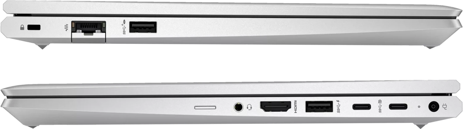 2x USB-C 3.1 mit DisplayPort 1.4 (10Gb/?s, Netzanschluss PD-In), 1x USB-A 3.0 (5Gb/?s, BC), 1x USB-A 3.0 (5Gb/?s), 1x HDMI 2.1, 1x 3.5mm Klinke, 1x RJ-45 (1000Base-T, Realtek RTL8111HSH), 1x DC-In Hohlbuchse (Netzanschluss) |