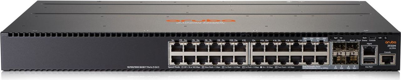 Die Aruba 2930M Switch-Serie wurde für den digitalen Arbeitsplatz konzipiert und ist die optimale Lösung für mobile Anwender. Diese Layer 3-Switches können mit erweiterten Tools für Sicherheit und Netzmanagement wie Aruba ClearPass Policy Manager, Aruba AirWave und cloudbasiertem Aruba Central unproblematisch bereitgestellt und verwaltet werden. Stacking-Module, Uplinks und verschiedene Leistungsklassen sorgen für Skalierbarkeit und Einfachheit in Unternehmensperipherien, kleinen und mittleren Unternehmen und Zweigstellen. Der 2930M ist leistungsstark und kostengünstig – er unterstützt statisches, RIP- und Zugriffs-Routing, 10-GbE- und 40-GbE-Uplinks, Modelle mit 24 HPE Smart Rate Multi-Gigabit-Ethernet-Anschlüssen, PoE+bis 1440 W, solide Servicequalität sowie SDN und erfordert keine Softwarelizenzierung.