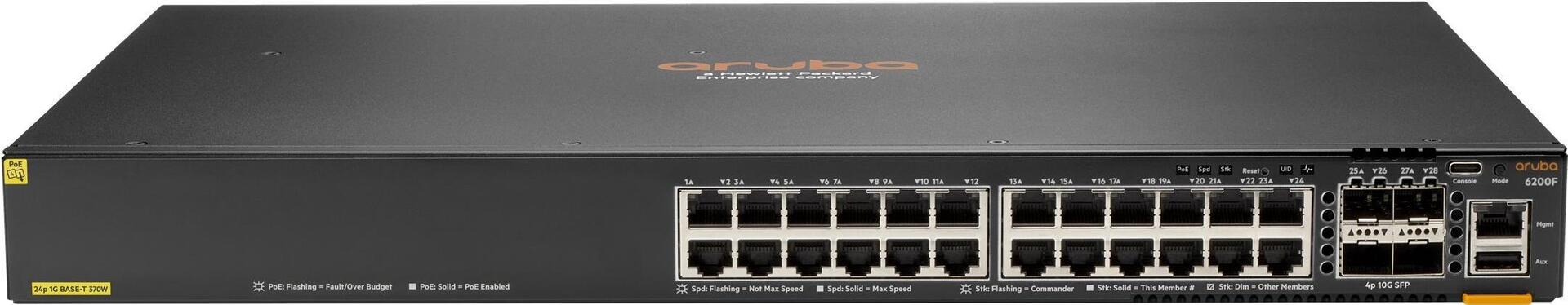 | Produktbeschreibung | HPE Aruba 6200F 24G Class4 PoE 4SFP+ 370W Switch - Switch - max. Stapelentfernung 10 km - 24 Anschlüsse - managed - an Rack montierbar |