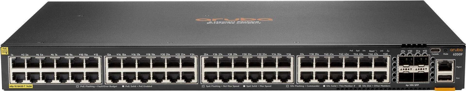 | Produktbeschreibung | HPE Aruba Networking CX 6200F 48G Class4 PoE 4SFP+ 740W Switch - Switch - max. Stapelentfernung 10 km - 48 Anschlüsse - managed - an Rack montierbar |