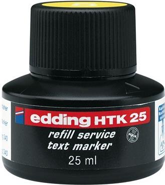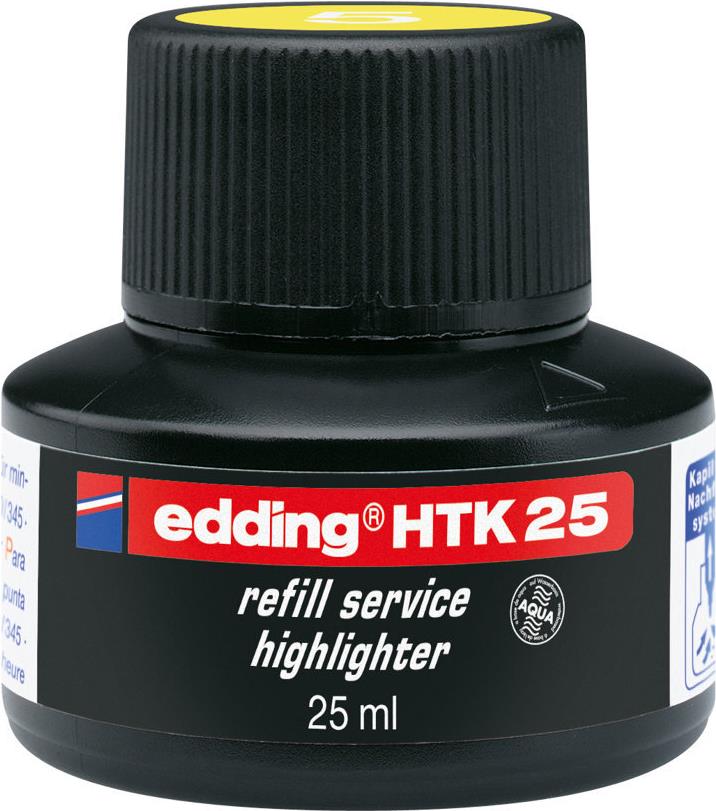 Nachfülltinte edding HTK 25 refill service text marker. Zum Nachfüllen der Highlighter edding 24, 340, 345. Geruchsneutrale, lichtbeständige Tinte auf Wasserbasis in einer Flasche mit Kapillarsystem. Marker einfach mit ...