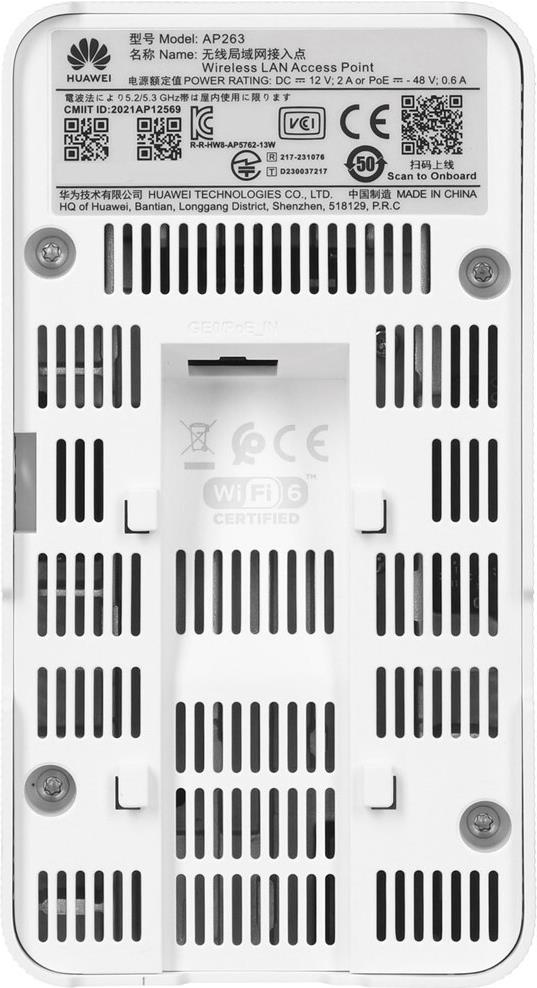 Das Netzwerkgerät AP263 von Huawei wurde entwickelt, um die Anforderungen moderner Netzwerkumgebungen zu erfüllen, und bietet sowohl kabelgebundene als auch drahtlose Konnektivitätslösungen. Dieses Gerät unterstützt eine Reihe von Datenverbindungsprotokollen, darunter Ethernet, Fast Ethernet, Gigabit Ethernet und den Wi-Fi 6-Standard, um einen Hochgeschwindigkeits-Internetzugang für alle angeschlossenen Geräte zu gewährleisten. Mit Bluetooth 5.0 LE und 2x2 MIMO-Technologie auf dem 2,4-GHz- und dem 5-GHz-Band bietet er eine verbesserte Netzwerkleistung und -abdeckung, ideal für Szenarien mit hoher Netzwerkdichte.