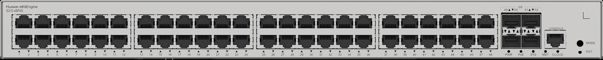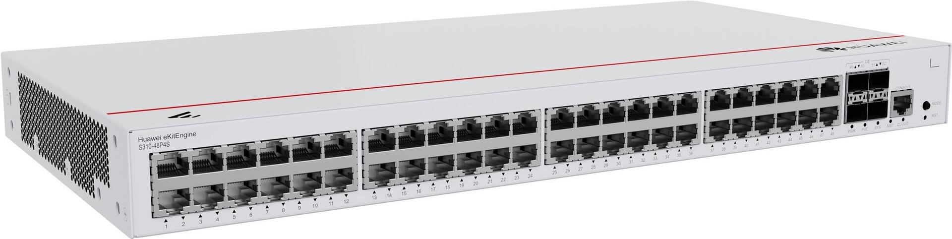 Huawei eKit Switch S310-48P4S 380W - Diese Serie von Ethernet-Switches - basierend auf hochleistungsfähiger Hardware der neuen Generation - kann in SOHO-Szenarien sowie für den Netzwerkzugang und die Aggregation in Unternehmenscampusnetzen eingesetzt werden. > Produkttyp- Switch- ear-Kategorie (ElektroG): relevant - Kategorie 6: kleine Geräte der IT- und TK-Technik - Kleine Geräte der IT- und TK-Technik B2C> Spezifikationen- Lüfter integriert- Switch-Art: Access> Anschlüsse- Bandbreite: 10/100/1000 MBit/s- Konsolenport- Hauptporttyp: Kupfer> Funktionen- Switch managebar: Ja- Montageart: 19" Rackmontage - Desktop- IGMP> Stromversorgung- Netzteil: integriert> Grundeigenschaften- Farbe: Grau- Höhe: 43.6 mm- Länge/Tiefe: 220 mm- Breite: 442 mm (98012384)