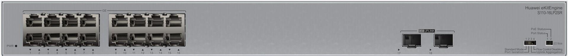 Huawei eKitEngine S110 Series S110-16LP2SR - Switch - 2 x Gigabit SFP + 16 x 10/100/1000 - Desktop, an Rack montierbar, wandmontierbar - PoE+ (124 W) (98012197)